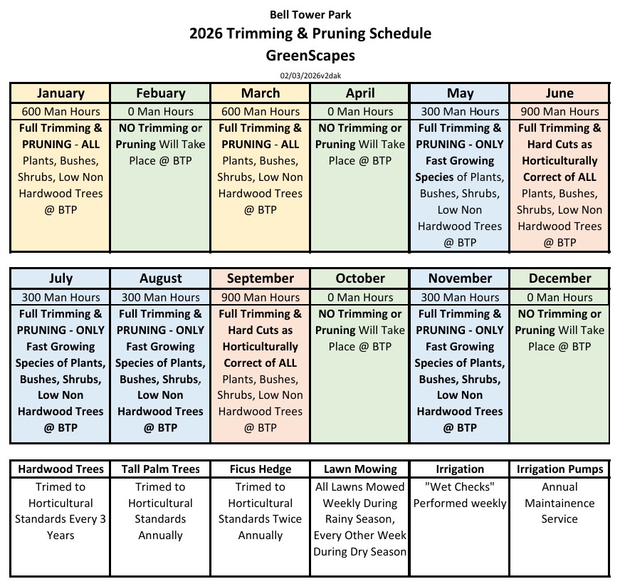 Permission is required and will be given if community rules are followed. Click HERE to get a good overview of the process. This link will take you to the August 2023 Bell Tower Notes II newsletter. Look for the pertinent article on page 19. In addition, the official approved “Plant List” can be seen by clicking HERE (goes to a folder in the website under FORMS/INFORMATIONAL FLYERS. Whether you want to do the work on your own or hire a contractor, the steps are just about the same. Hiring the BTP contracted landscaping company (currently Greenscapes), will simplify the process a bit, since they are already on file with the office.